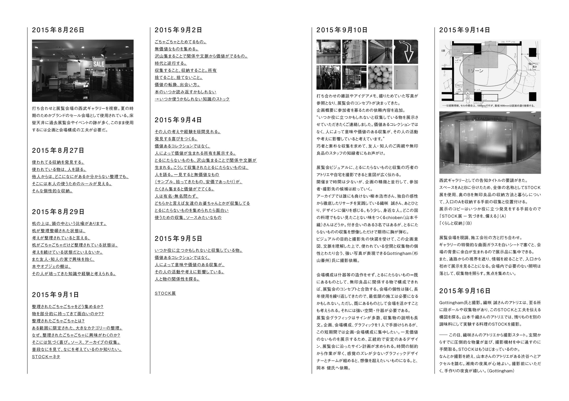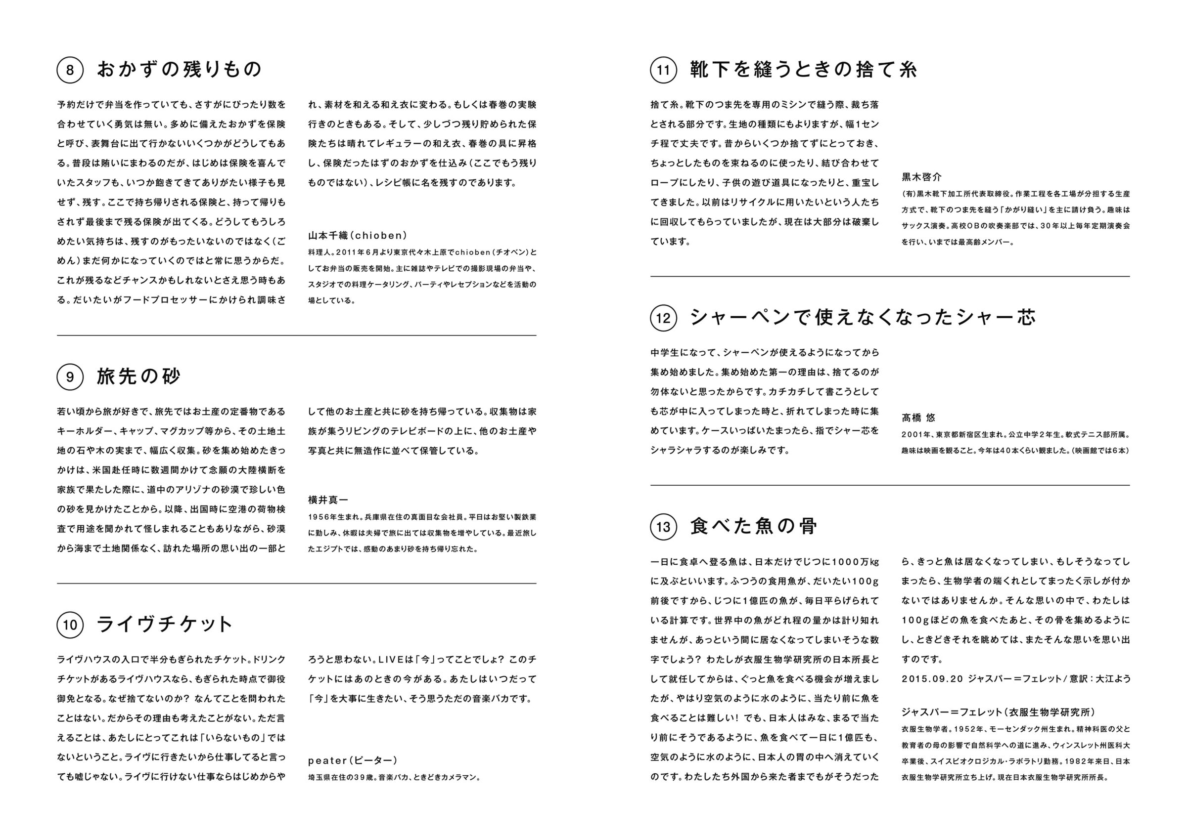 2015年 無印良品 池袋西武 企画展「STOCK展-気づきを、備える」では、13歳から76歳までの職業も異なる28名が集めている「とるにたらないもの」と解説を展示。