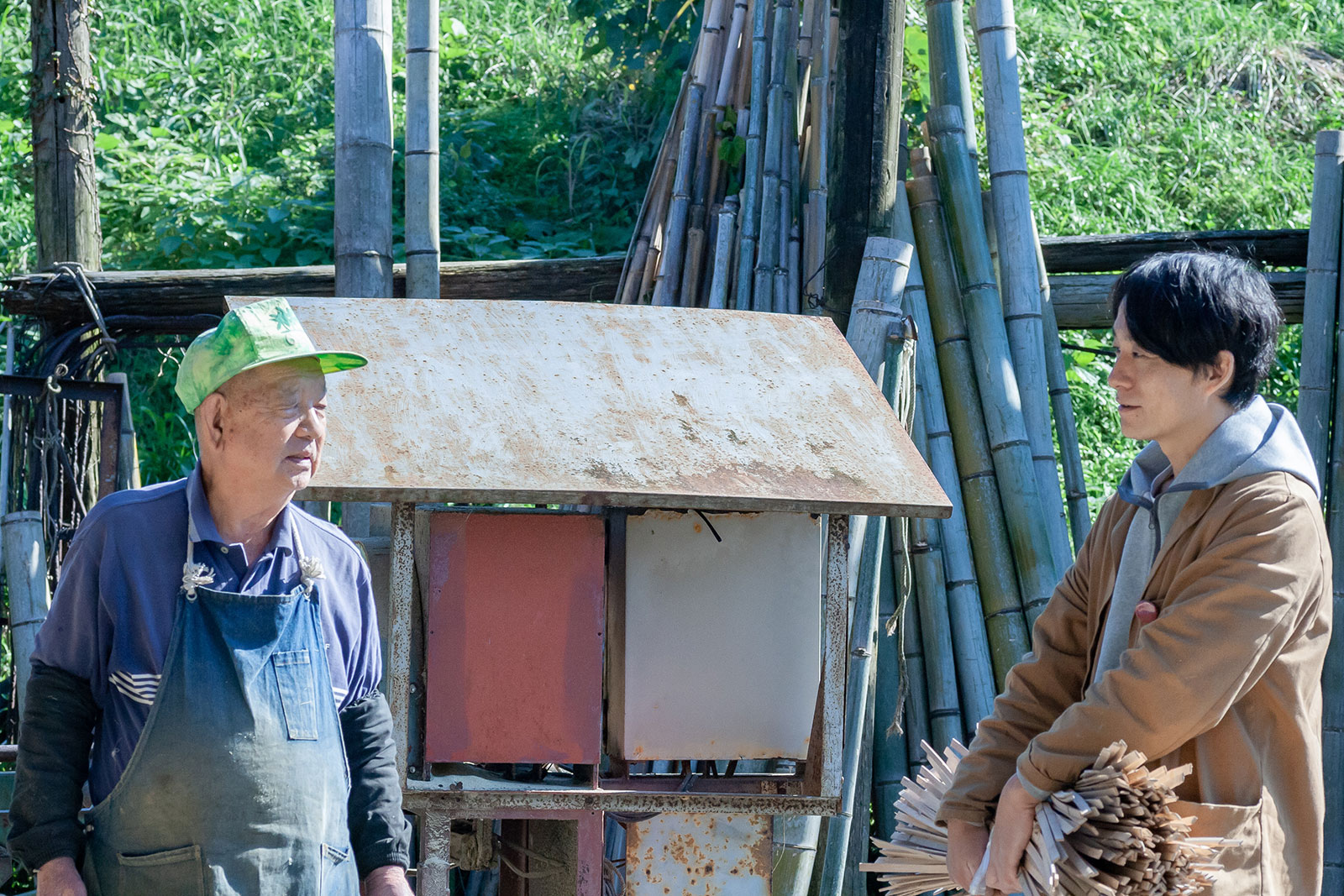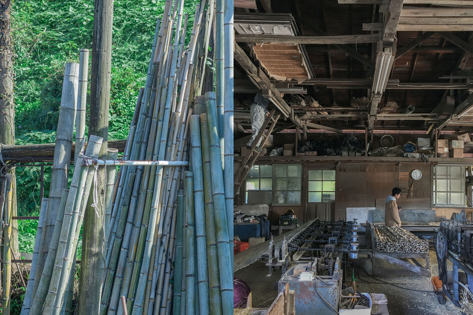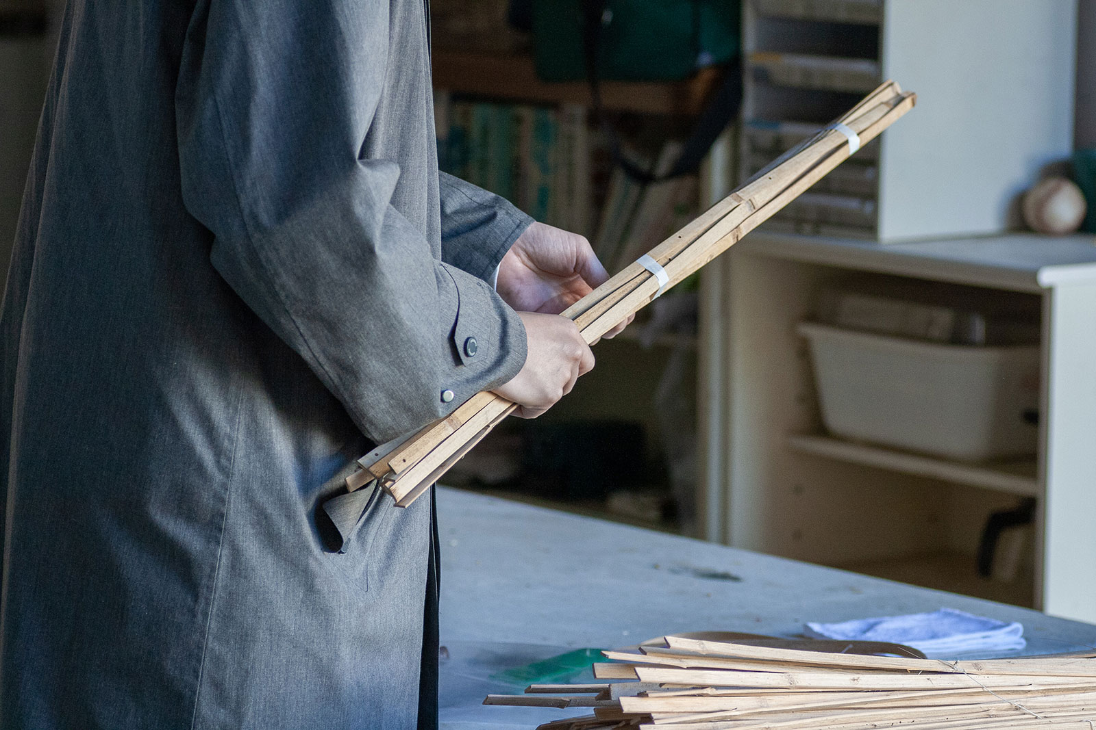 大多喜の竹、滝の石、MITOSAYA薬草園蒸留所の植物から構成したボタニカル・プロダクト。竹の加工は簡単そうに見えて手間がかかる。試行錯誤しては失敗が続き、竹をガイドに別素材と作ろうとした竹の治具に良さがあった。このままだと機能がない。それが良い。